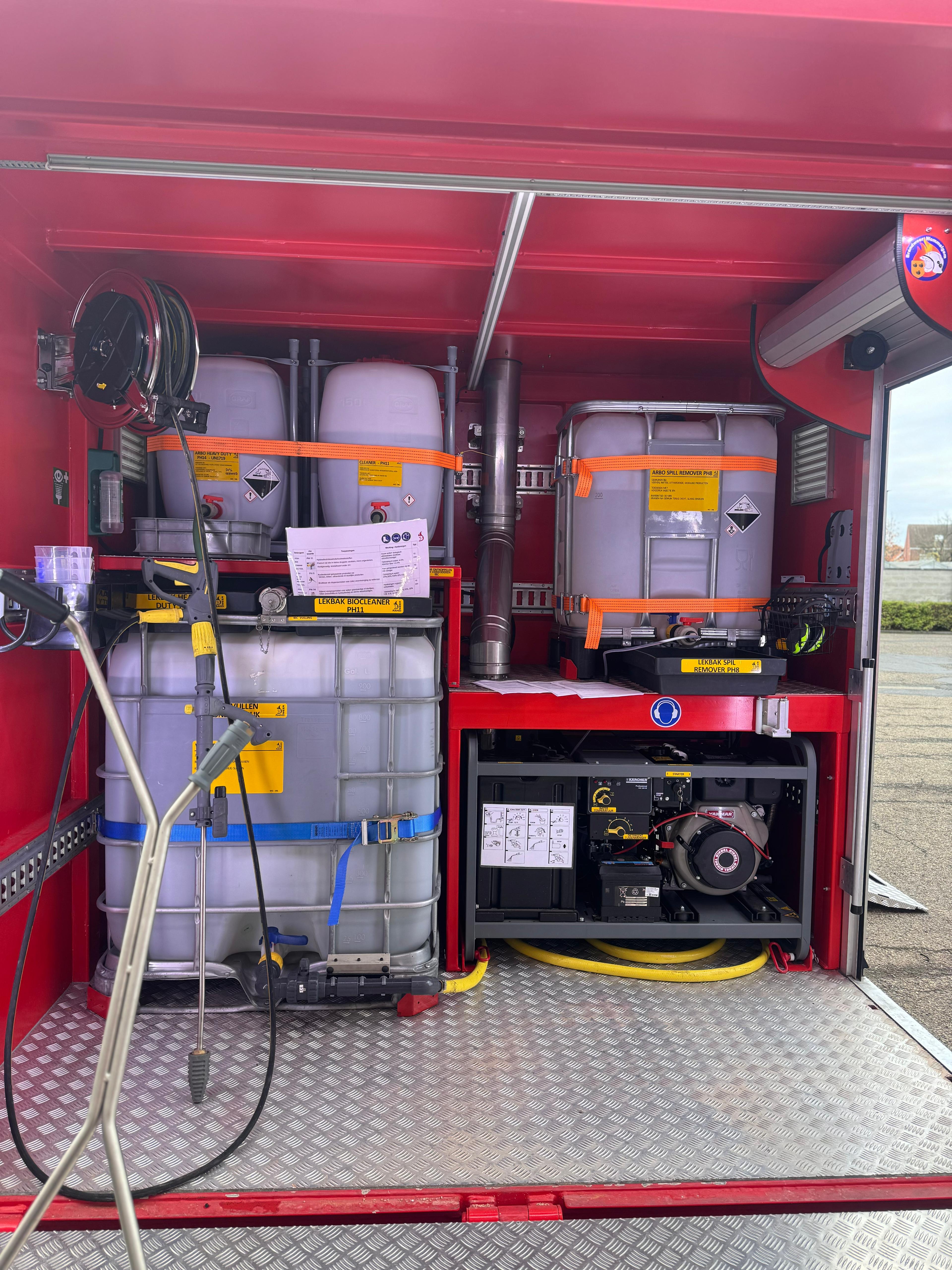 - uitgerust voor diverse technische interventies zoals pompwerken, stormschade, wespenverdelging en logistieke ondersteuning.
